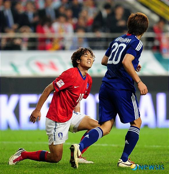 박주영(한국)이 슈팅이 무산되자 아쉬워 하고 있다.