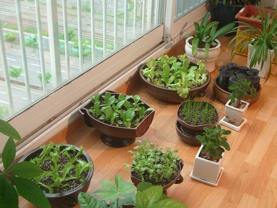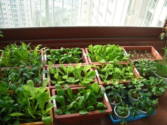 김장용 배추나 무, 고추 등을 키우기엔 베란다 안은 광량이 너무 부족하다. 하지만, 청치마상추나 쑥갓, 엔다이브, 치커리, 부추, 쪽파와 같은 잎채소 작물들은 광이 적어도 비교적 잘 자라고 기르기도 쉽다.