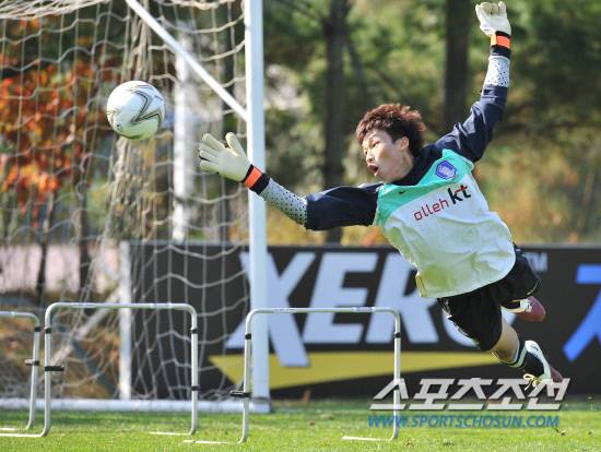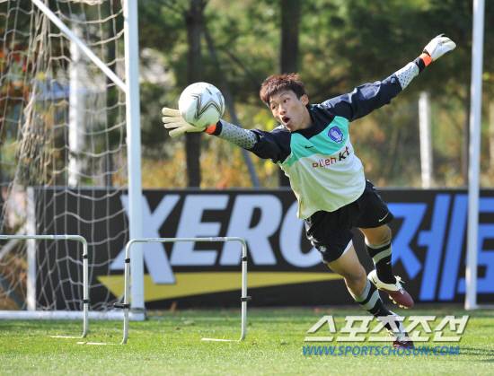 김승규가 22일 파주NFC에서벌어진 강도높은 GK훈련중 다이빙펀칭으로 볼을 막아내고 있다. 파주NFC=서영필 기자 young@sportschosun.com
