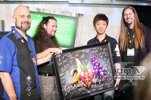 GSL 오픈 시즌1의 챔피언 '과일장수' 김원기가 미국시간으로 22일 저녁 블리즈컨 2010에서 열린 임요환과의 이벤트 매치 종료 후 블리자드의 아트 디렉터 샘 와이즈로부터 진짜 컨셉트 아트를 선물 받았다.