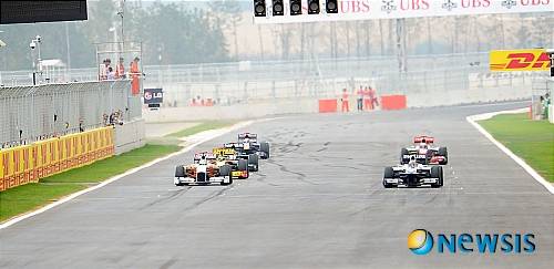 【영암=뉴시스】허경 기자 = 23일 오전 전남 영암 코리아 인터내셔널 서킷에서 열린 '2010 포뮬러원 코리아 그랑프리(2010 FORMULA1 KOREAN GRAND PRIX)'에서 예선을 앞두고 마지막 공식 연습주행을 하고 있다.