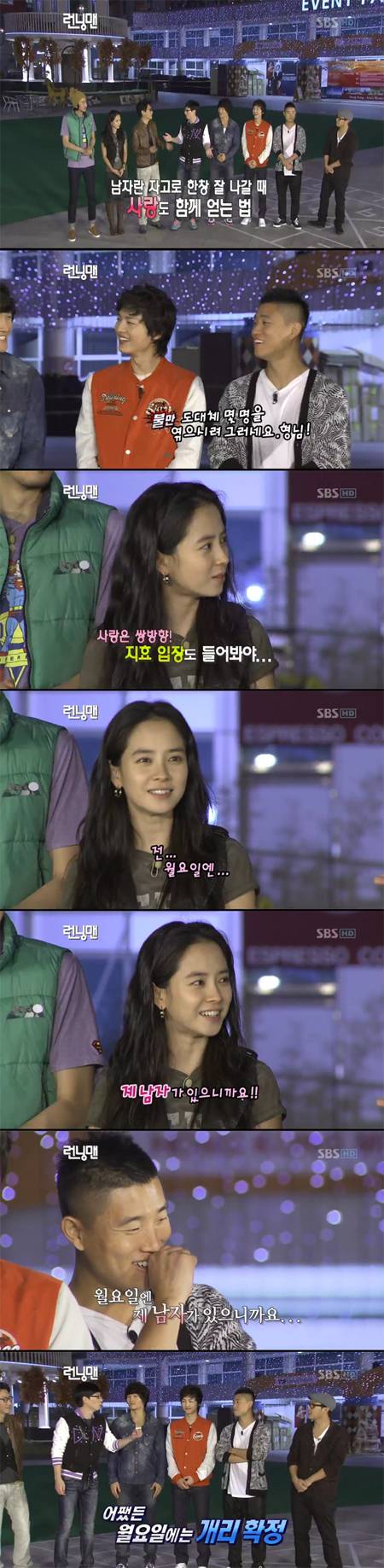 이는 개리를 의식한 발언. 출연자들에 의해 개리와 월요일마다 연애한다는 의미에 '월요커플'로 명명됐던 송지효가 이를 직접 입에 올린 건 처음이었다.
