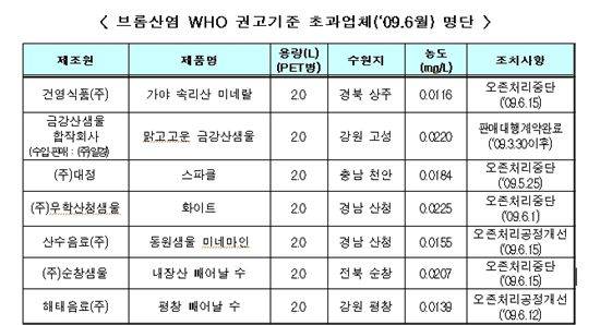환경부는 지난해 조사 당시 국내법에 브롬산염 수질기준이 설정돼 있지 않아 해당 업체들이 위법·부당한 영업행위를 한 것으로 볼 수 없다며 명단을 공개하지 않았었다.