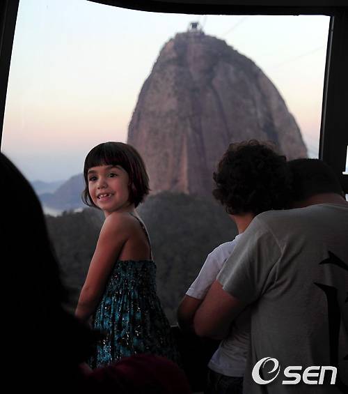 케이블카를 타고 빵산에 올라가는 소녀의 눈이 아름다운 경치에 함박웃음을 짓는다. 정면으로 빵산이 보인다. 빵산은 해발 396m로 정상에 올라가면 리우의 아름다운 모습에 흠뻑 빠져든다.