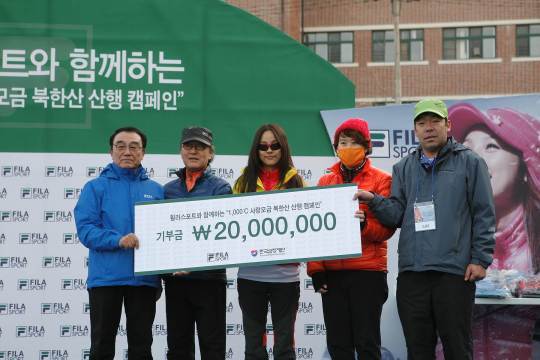 14일, '휠라 스포트 1,000℃ 사랑 모금 북한산 산행 캠페인'이라는 이름으로 북한산에서진행된 이번 행사는 휠라 스포트가 사랑 나눔을 실천하기 위해 마련한 행사로, 신청접수를 한 1,000명의 참가자들은 이효리, 그리고 휠라코리아 윤윤수 회장을 비롯한 임직원과 함께 4시간 가량 북한산을 등반했다.