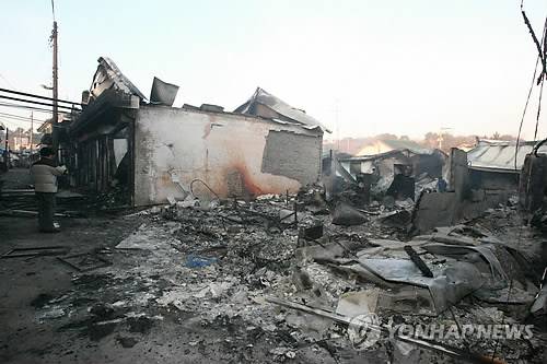 (연평도=연합뉴스) 지난 23일 북한이 발사한 포탄이 떨어진 연평도 민가의 가옥이 파괴돼 처참한 모습을 보이고 있다. 2010.11.24 < < 옹진군청 > >