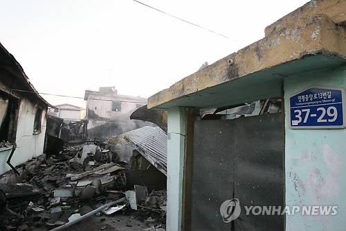 (연평도=연합뉴스) 지난 23일 북한이 발사한 포탄이 떨어진 연평도 민가의 가옥이 파괴돼 처참한 모습을 보이고 있다. 2010.11.24 < < 옹진군청 > >