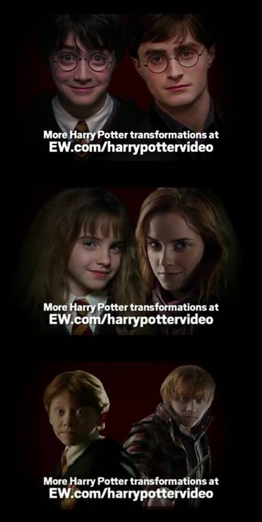 전 세계 팬들이 지켜본 세 주인공들의 성장을 한 눈에 볼 수 있는 친절한 영상. 영상 속 세 주인공들은 잘 자란 성장의 예시라 할 만큼 귀여운 소년, 소녀에서 완연한 성인의 모습을 보여주고 있다. 2001년 처음 영화가 개봉될 당시 10대였으나 이제 마지막 편을 앞두고 20대가 된 주인공들의 모습은 많은 팬들의 추억을 되살리며 특별한 감흥을 전한다.