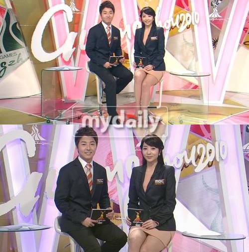 앞서 지난 14일 새벽 방송된 2010 광저우 아시아경기대회 하이라이트에서 양 아나운서는 피부색과 비슷한 색상의 짧은 원피스를 입고 등장했다.
