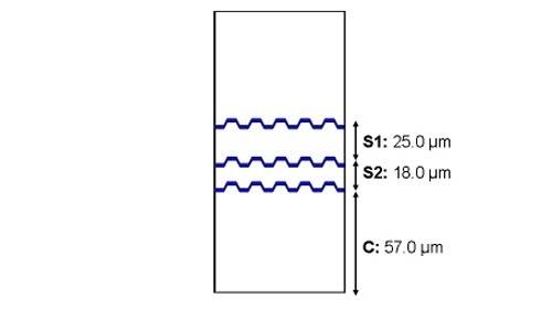 레이어 사이 공간(S1과 S2)이 10μm 미만일 때 간섭 현상이 생긴다. 신호가 들어오면 다른 레이어에 영향을 줄 수 있다. 즉 10μm 이상을 유지해야 한다. |