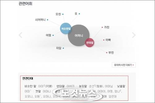이와 함께 '유의어 사전 더보기' 기능을 통해 높임말, 낮춤말, 옛말, 방언, 은어 등의 더욱 풍부한 연관단어도 확인이 가능하다.