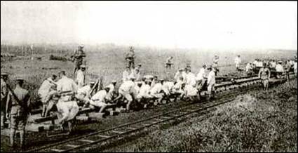 황해도 봉산군에는 매일같이 2100명의 역부가 동원되어 농사조차 지을 수 없는 상황이 되었다. 그들에게는 전쟁 중이라 1냥에서 2냥의 일당을 지급한다고 했으나 거짓이었다. 때문에 집집마다 빚을 내어 역부로 나가는 형편이었다. 역부 일을 해도 차비와 식비 같은 기본적 비용이 필요한데, 일본은 최소한의 비용조차 지급하지 않았던 것이다. … 기장에서는 수백 명이 2000리나 떨어진 신의주 인근까지 끌려와 역부로 동원되었다. 그러나 이들에게도 노임은 물론 식비와 운임조차 지급되지 않았다. 그 바람에 수백 냥의 빚을 진 사람들이 딸을 팔고 부인을 빼앗기는 일도 빈발했다. 뿐만 아니라 철도 현장에서 중노동을 견디지 못하고 죽는 사람도 많았다. … 일본인은 조선인 역부를 노예 취급했다. - 책에서