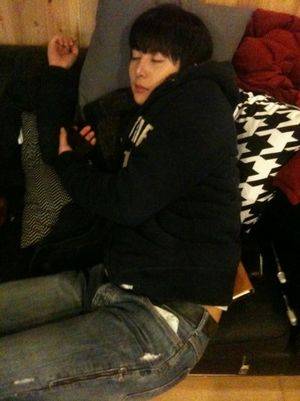 온라인에 공개된 김형준의 사진은 "너무 피곤해 쓰러진 김현중"이란 제목으로 최근 뮤지컬 배우로 변신한 김형준의 자고 있는 사진이다.