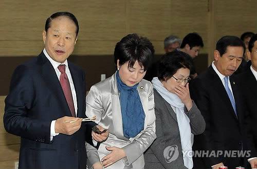 (서울=연합뉴스) 이정훈 기자 = 한나라당 이상득 의원이 3일 오후 국회 의원식당에서 열린 2010 포항명물 과메기 시식회에서 과메기를 맛보고 있다. 2010.12.3