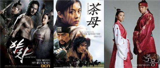 이어 선보인 두글자 제목의 '주몽'도 시청률 40%를 넘으며 국민 사극으로 등극했다. 주인공 주몽을 맡은 송일국뿐 아니라 해모수(허준호 분), 유화(오연수 분), 금와왕(전광렬 분) 등 모든 출연진이 골고루 큰 사랑을 받은 드라마.