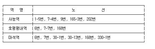 남양주 12개 노선버스 경춘선 복선전철역 경유