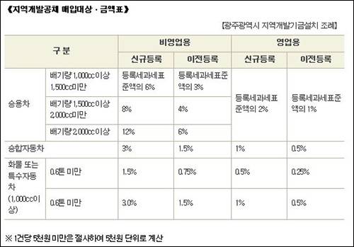 광주광역시를 기준으로 배기량 2천CC이하인 구입가격 1700만 원짜리 승용차를 등록하려면 구입금액의 8% 지역개발공채를 의무적으로 구입해야 한다. 이를 계산하면 136만 원어치의 공채를 구입해야 하는 것. 하지만 창구에서 즉시매도(속칭 '와리깡') 한다고 해도 20~30만 원(통상할인율 18~20%)의 비용을 감수해야 한다.