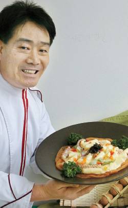 ▶재료(4인분)=송로버섯 5g, 전복 1마리, 산낙지 1마리, 떡 400g, 생크림 400ml, 파프리카 50g, 양파 20g, 토마토 1개, 다진 마늘 5g, 달걀노른자 2개 분량, 파마산치즈 50g, 화이트와인 20ml, 소금 적당량, 후추 적당량.