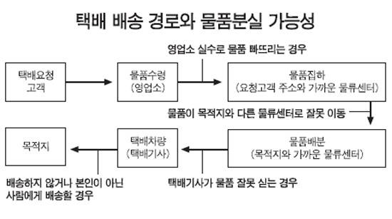 이처럼 소비자들이 배달시킨 물품이 물류센터의 배송분류 과정과 택배기사의 배달과정 곳곳에서 분실되는 사례가 적지 않다. 한 택배업체 관계자는 "국내 택배업은 아직 낙후돼 있어 물류센터에서도 사람들이 일일이 물품을 분류해 이동하는 곳이 많고, 폐지 줍는 사람 같이 외부인 출입도 어렵지 않다"며 "물품이 없어진 경우 딱 어느 시점에서 어떻게 분실사고가 일어났는지 알 수 없는 상황이 태반"이라고 털어놓았다. 택배업체의 한 물류센터 직원은 "2, 3년 전 내비게이션이 한창 보급될 때 택배기사들이 훔치는 경우가 적지 않았다"며 "워낙 물품이 자주 없어지는 데다, 누가 빼돌렸는지 확인도 되지 않아 일정지역을 맡은 기사들끼리 연대책임으로 돈을 모아 보상하는 내부관행마저 생겼다"고 말했다.