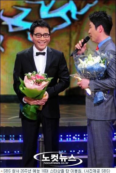 ▲ SBS 창사20주년 예능 10대 스타상= 이홍렬, 강호동, 이영자, 유재석, 이경규, 남희석, 이봉원, 신동엽, 김용만, 이효리