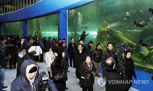 전시관 관람에 나선 참석자들은 각 수족관마다 배치된 안내원의 설명을 들으며 관람했으며 국내 최대 규모인 4천t 규모의 아쿠아리움 위용에는 놀라움을 나타내기도 했다.