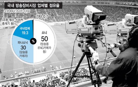 하지만 이 시장에서 국내 업체가 차지할 몫은 미미할 전망이다. 방송통신위원회에 따르면 카메라 등 국내 방송장비 시장의 80%가량을 소니와 파나소닉 등 일본 제품이 석권하고 있고, 국내 제품 시장점유율은 19.3%이다. 특히 콘텐츠 제작의 핵심인 카메라 등 영상제작장비 국산화율은 5%에 불과하다.