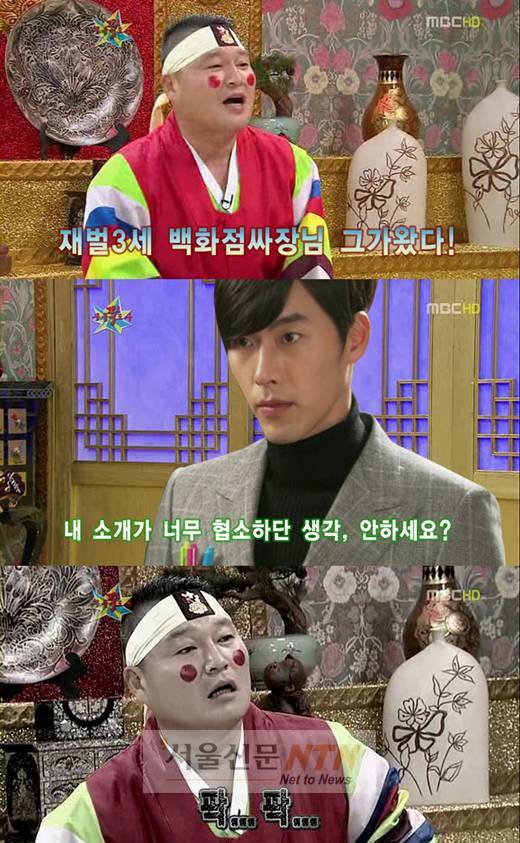 최근 한 인터넷 커뮤니티에 올라온 이 패러디 물은 MBC 인기 프로그램 '황금어장-무릎팍도사'에 SBS 주말드라마 '시크릿 가든' 김주원(현빈)이 가상으로 출연한 모습을 담고 있다.