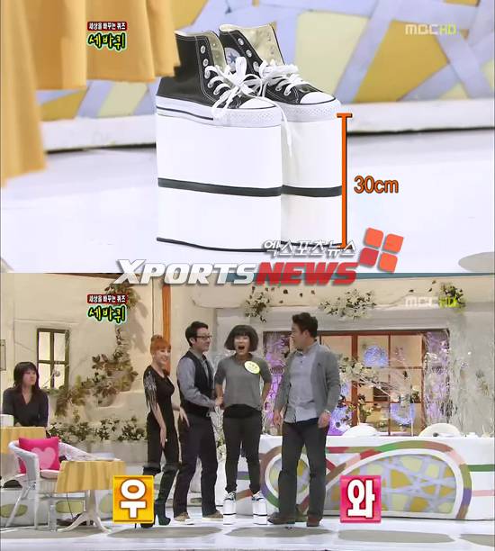 지난 8일 MBC '세상을 바꾸는 퀴즈'(이하 세바퀴)에 출연한 서인영이 30cm 굽 운동화를 공개해 출연자들을 놀라움을 샀다.
