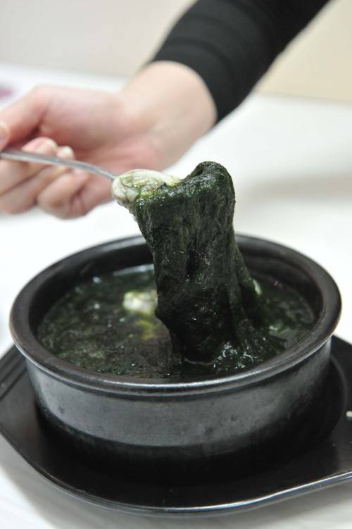 Here, miyeokguk (seaweed soup) is customarily eaten on birthdays, while squares of gim (laver) often adorn the dinner table.