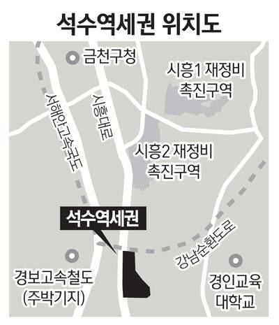 17일 금천구는 전철 1호선 석수역 앞 강남순환도로와 서울 시계로 둘러싸인 지역을 역세권 개발방식을 적용해 개발한다고 밝혔다. 시흥재정비촉진지구의 가장 남쪽에 위치한 이 곳은 시흥대로변의 중앙철재상가와 진성연립 등 주택들이 들어서 있으며 지난 2008년 시흥재정비촉진획을 수립할 때 재개발 기준 충족되지 않아 존치관리구역으로 남아 있다.