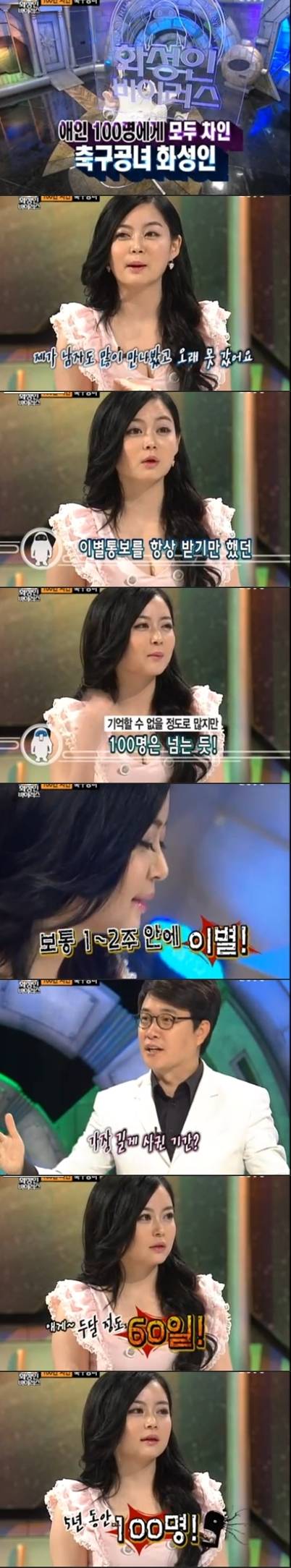 '화성인 바이러스'에 100번 넘게 연애를 하고 100번 차인 일명 '축구공녀'가 등장해 화제다.