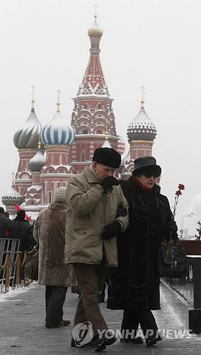 epa02541368 Russian communists commemorate Vladimir Lenin on the 87th anniversary of the Soviet founder's death near his mausoleum on the Red square in Moscow, Russia, 21 January 2011. Lenin died in 1924 and was placed in mausoleum despite his will to be buried near his mother at Volkovo cemetery in St.Petersburg. United Russia pro-presidential party demand to remove Lenin's body from mausoleum and to realize his will. EPA/SERGEI CHIRIKOV < 뉴스의 새 시대, 연합뉴스 Live >< 모바일 애플리케이션 >< 포토 매거진 >< 저작권자(c)연합뉴스. 무단전재-재배포금지. >