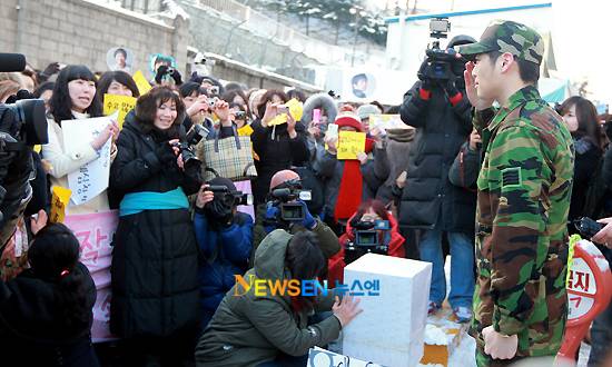 김재원 전역식 취재를 위해 이날 이른 아침부터 50여명의 취재진과 150여명의 국내외 팬이 모인 가운데 김재원은 이날 8시 20분께 모습을 드러냈다.