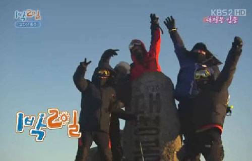 강호동 이승기 이수근 김종민 은지원 등 멤버들은 허벅지, 종아리 등에 쥐가 나는 악조건 속에서 중청대피소까지 무사히 도착, 안도의 한숨을 내쉬었다.