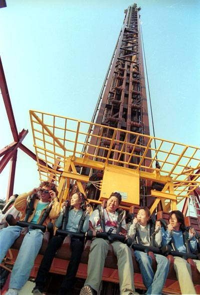 떨어지는 맛의 또 다른 강자, 타워형 놀이기구다. 타워형은 크게 세 종류로 나뉜다. 승객을 태운 탑승물을 아래에서 위로 빠르게 솟구쳐 올린 다음 천천히 내려놓는 '샷(shot)'형과 탑승물을 천천히 끌어올린 다음 빠르게 떨어뜨리는 '드롭(drop)'형, 이 둘을 섞어놓은 혼합형이다.
