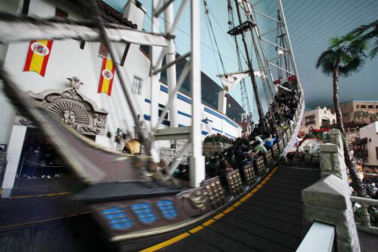 바이킹과 자이로스윙의 차이는 동력의 위치다. 바이킹은 동력이 아래에, 자이로스윙은 위에 있다. 바이킹은 배 아래 지면에 모터와 연결된 휠이 설치돼 있다. 모터가 돌면 휠이 함께 돌면서 배를 밀어준다. 올라간 배가 중력에 의해 내려오면 휠이 이번엔 반대 방향으로 돌면서 배를 밀어 올린다. 휠이 왼쪽으로 돌면 배도 왼쪽으로, 휠이 오른쪽으로 돌면 배도 오른쪽으로 밀려 올라가며 왕복운동을 하는 원리다. 그네 탈 때 발을 굴러 높이 올라가는 것과 같은 이치다. 휠이 점점 속도를 줄이면 배도 왕복운동을 멈춘다.