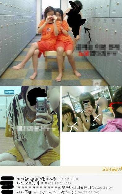최근 한 온라인 게시판에는 '개념 없는 중고딩들의 찜질방 몰카 충격'이란 제목으로 여중생으로 보이는 학생들이 찜질방에서 찍은 셀카 사진 몇 장이 게재됐다.