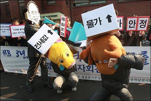 반면, '강부자'를 위한 정책은 이명박 정부 3년 내내 일관되게 이어졌다. 집값의 하향 안정화가 전세난 완화에 큰 도움이 되는데도, 이명박 정부는 일관된 부동산 규제·세제 완화로 투기 수요를 자극하는 방법으로 '집값 떠받치기'에 '올인'하고 있다.