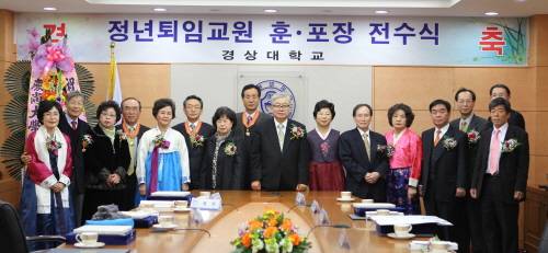 경상대학교는 2011년 2월 28일자로 정년퇴임하는 교수들에 대한 정부 훈포장 전수식을 2월 25일 오후 5시 대학본부 3층 상황실에서 개최했다.