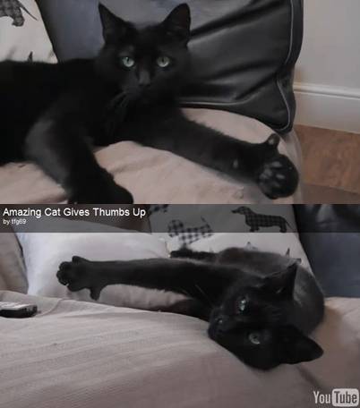 한 외신은 25일(현지시간) 엄지손가락을 올려달라는 여자주인의 말에 손가락을 치켜세우는 듯한 포즈를 취하는 고양이 동영상이 유튜브에 올라왔다고 전했다.