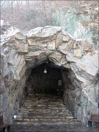내부는 철계단으로 이어져 있다. 철계단을 오르기도 하고 내려가기도 하면서 동굴 깊숙이 들어간다. 지금이야 이렇게 길을 만들어 사람들이 관람할 수 있게 해놨지만 임진왜란 때는 잘못 들어갔다가는 길을 잃기 딱 알맞았을 것 같다. 동굴 안으로 기어들다가 이 길이 아닌가베, 하면서 돌아 나오길 수십 차례 하지 않았을까? 나 같은 길치는 들어갈 때마다 길을 잃고 헤맸을 거 같다. 아마도 동굴 벽에 길 표시를 했겠지.