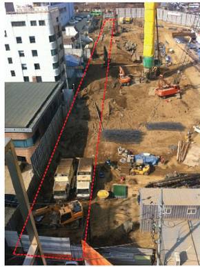 지난해 공사가 시작돼 올해 1월로 접어들면서 공사장 서쪽 길이 165m, 너비 8m짜리 공공도로가 사라졌다. 교회 쪽이 공사장 왼편에 있는 '참나리길'을 차단하고 아예 공사장 터로 쓰고 있기 때문이다.