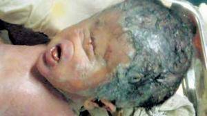 인도의 한 작은 마을에 사는 비나 차반(34)이란 여성은 임신 34주 만인 지난 주 제왕절개 수술 끝에 사내 아기를 낳았지만 외모는 다른 아기들과 달랐다.