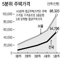 반면, 이 기간동안 전국 주택가격 상위 20%의 평균 집값은 5억 7464만원에서 5억 4796만원으로 2600만원 이상 떨어졌다.