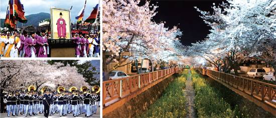 전국 벚꽃축제 가운데는 국내에서 가장 화려하다는 진해 군항제(4월1~10일)나 서울 한강 여의도 봄꽃축제(4월8~19일)와 경기도청 벚꽃축제(4월15~17일 예정) 등이 우선 눈길을 끈다. 또 금천구민 하모니 페스티벌(4월4~10일)이나 계룡산 동학사벚꽃축제(4월8~17일), 제천 청풍호 벚꽃축제(4월15~17일) 등도 봄을 느끼기에 좋은 행사이다.