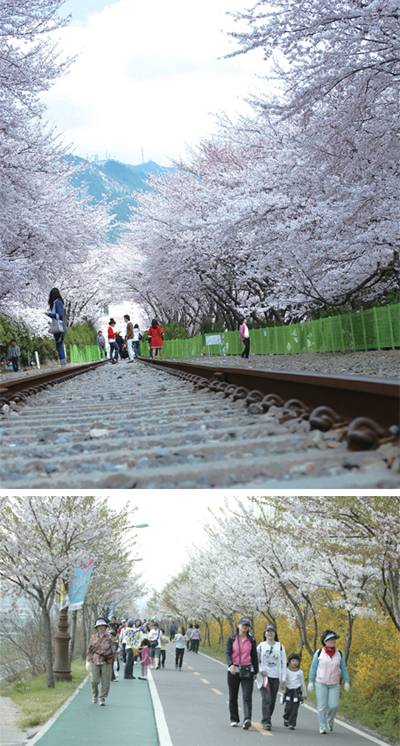 제천 청풍면에선 15일부터 17일까지 '청풍호 벚꽃축제'가 열린다. 청풍호반 도로 13km 구간엔 25년 이상 된 벚나무가 열을 지어 늘어서 있어 벚꽃이 활짝 필 때 이곳을 지나면 마치 꽃으로 된 터널에 들어선 것 같다.