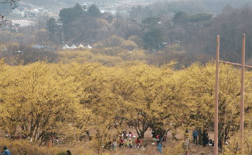 벚꽃축제가 분홍빛 축제라면 산수유꽃축제는 노랑색 축제라고 할 수 있다. 온산을 뒤덮은 노란색 산수유 나무를 배경으로 벌이는 잔치이기에 그렇다. 그것도 단순히 즐기기만 하는 게 아니라 간이나 콩팥에 좋고 허리와 무릎을 따뜻하게 해 시리고 저린 증상을 달래준다는 약재를 주제로 한 축제란 점에서 주최 측이나 참가자 모두 이익이 되는 행사이기도 하다.
