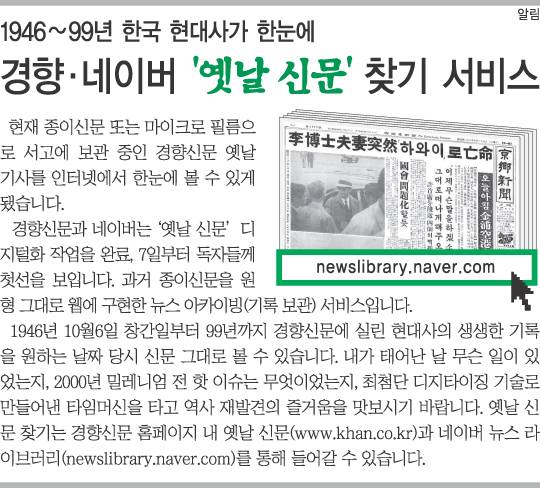 [알림]경향·네이버 '옛날 신문' 찾기 서비스 오픈