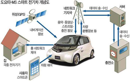 일본 도요타자동차는 7일 세계 최대 소프트웨어 회사인 마이크로소프트(MS)와 손잡고 '클라우드 컴퓨팅'에 기반한 차세대 전기차 개발에 나선다고 선언했다. 클라우드 컴퓨팅은 모든 데이터를 인터넷상 서버에서 관리,제어하는 기술이다. 중앙 서버를 통해 각종 정보(데이터)를 차량에 전달할 뿐만 아니라 운전자도 실시간으로 운행 정보 등을 전송할 수 있는 쌍방향 기술이다.