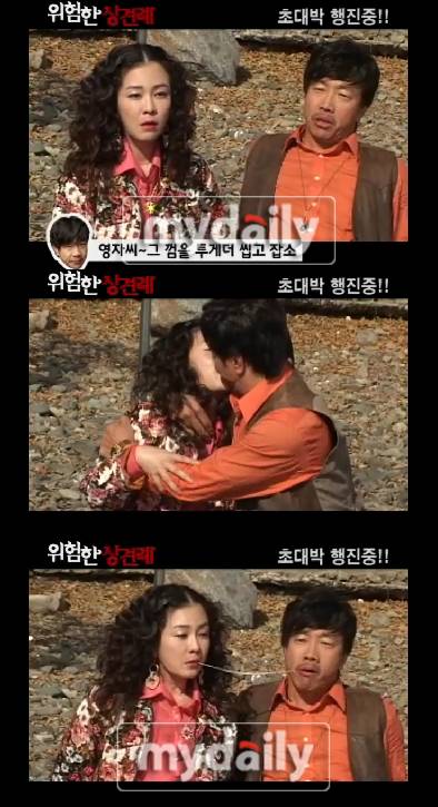 키스 후 박철민은 껌을 씹으며 "근디 나가 왜 껌을 씹고 있다요? 돌려드릴께라우"라며 다시 김정난에게 키스를 퍼붓는다.